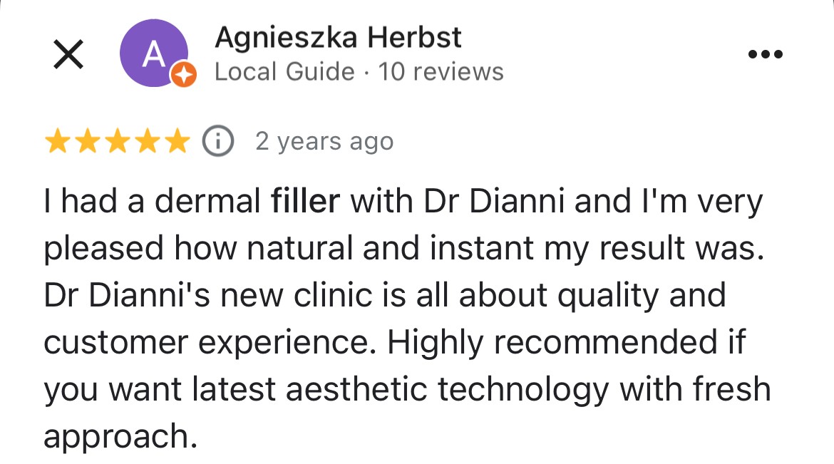 Dr Dianni is a recognised expert in advanced injectable procedures, including non-surgical rhinoplasty, tear trough correction, and non-surgical facelifts. She also specialises in scar revision, pigmentation management, and is highly experienced in the use of Ultrapulse CO2 laser technology for skin resurfacing and complex dermatological concerns. She is also highly skilled in advanced techniques for nose and lip fillers, including specialised methods tailored for Asian facial aesthetics and facelifts.